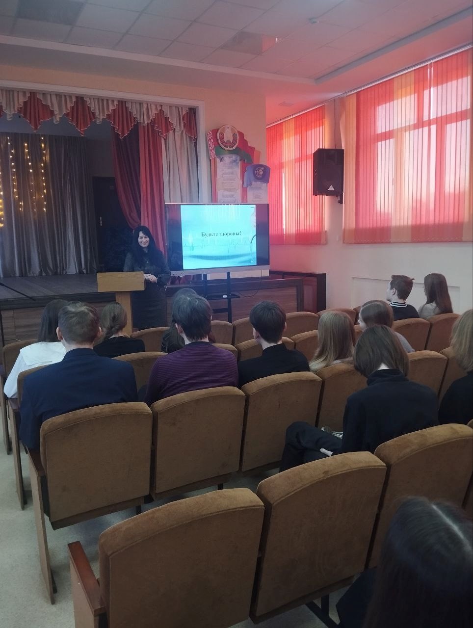 В рамках акции «Мы вместе» на базе ГУО «Средняя школа № 18 имени Л.М. Доватора г. Гродно» врач по медицинской профилактике отдела общественного здоровья провела информационный час «Будем жить здоровыми!». Специалист рассказала старшеклассникам о том, что соблюдение принципов здорового образа жизни и регулярные медицинские осмотры являются базовыми факторами профилактики онкологических заболеваний. Внимание к собственному здоровью, отказ от вредных привычек и употребление в пищу качественных продуктов питания – минимум, позволяющий предотвратить развитие многих заболеваний.