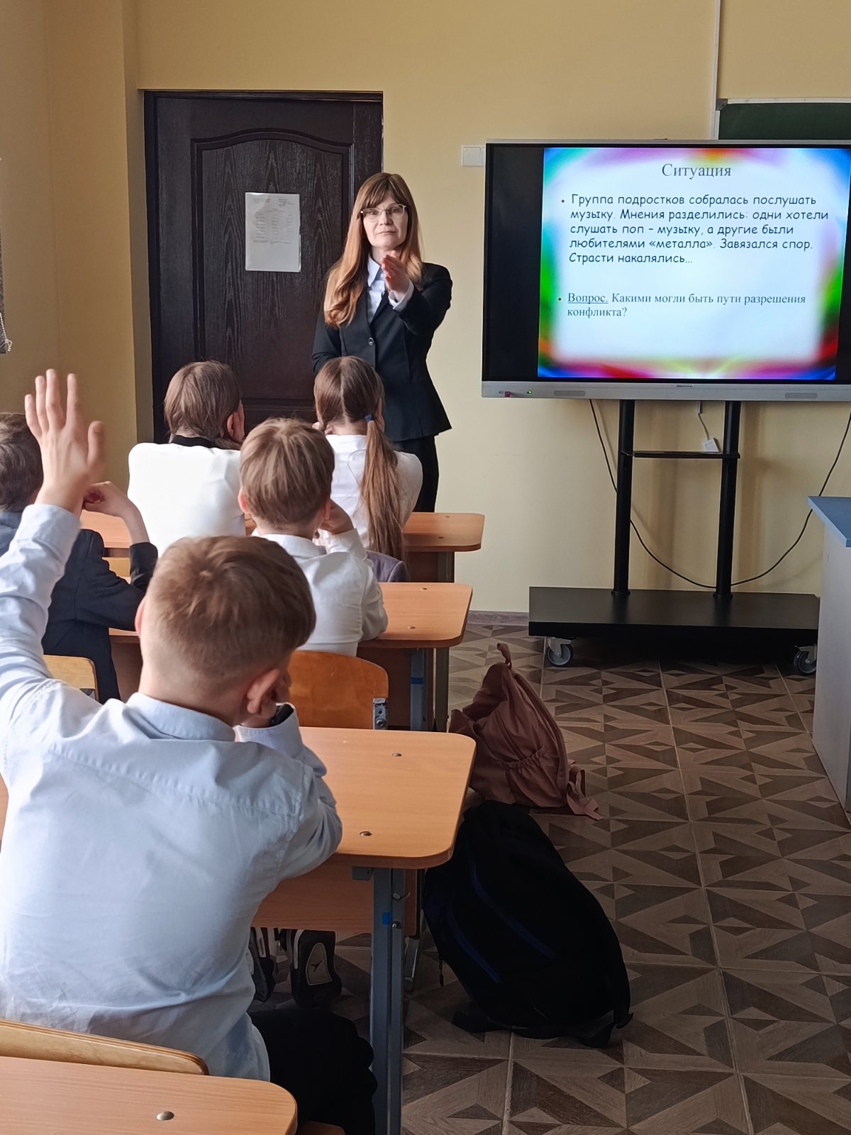 Ребята, попадали ли вы когда-нибудь в конфликтные ситуации? Что вы предпринимаете, чтобы избежать конфликтов в школе, с друзьями, учителями, в семье? – поинтересовалась медработник и разъяснила, что «конфликт» в переводе с латинского означает «столкновение». С точки зрения психологии – это явление, возникающее в результате столкновения противоположных действий, взглядов, интересов, стремлений, планов различных людей.